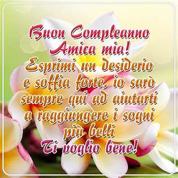 Amica mia, è anche questa volta festeggiamo un nuovo anno di vita assieme e anche questa volta ti voglio dire grazie perché con la tua presenza hai reso la mia vita migliore.. TOP 72 Nuovi Auguri di Buon Compleanno per un'amica e Immagini! Per il tuo compleanno, guarda al futuro e dimentica il passato: Se cerchi le frasi per la migliore amica. Non vedo l’ora di rivederti. Fai crescere i guadagni dal tramonto all’alba. Auguri di buon compleanno alla mia amica speciale.. Esprimi un desiderio e soffia forte, io sarò sempre qui ad aiutarti a raggiungere i sogni più belli.