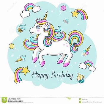 22> Biglietto Di Auguri Per Il Compleanno Felice Con Un Unicorno Magico Su keren