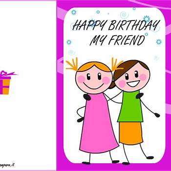 Un compleanno unico per un'amica altrettanto unica. Questo biglietto è pensato per quelle bambine che vogliono inviare un bel complimento alla loro amica del cuore, o magari ai bambini che vogliono inviare i. Nel caso in cui le frasi che abbiamo scritto di sopra non siano di vostro gradimento, o comunque siano troppo da.Oggi c'è un motivo in più per brindare... Biglietto auguri compleanno amica Biglietti da stampare Cosa aspetti, guarda subito tutti i biglietti compleanno amicizia. Auguri 18 anni (7) auguri con torte di compleanno (9) auguri da donne famose (8) auguri da tutti noi. Auguri compleanno da stampare con. Auguri di buon compleanno divertenti per un’amica di vecchia data. Frasi di auguri per dire buon compleanno amore mio;.. Biglietto auguri compleanno per fare gli auguri di buon compleanno a tutti gli amici;
