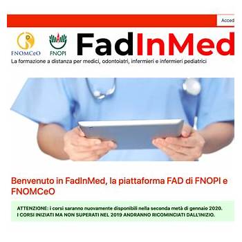 La piattaforma fadinmed nasce dalla volontà della fnomceo e della fnopi di offrire ai propri iscritti (medici, odontoiatri, infermieri, e infermieri pediatrici) programmi di formazione a. Accedi al catalogo completo > la responsabilita' sanitaria:2506 e mettiamo a tua disposizione una piattaforma per la formazione a distanza prima nella classifica “the.. Corsi ECM cosa sono e per chi sono obbligatori Conseguimento crediti formativi ecm per osservanza obbligo triennale; Verde 800 198 966 garantisce assistenza tecnica e scientifica dal lunedì al venerdì dalle 08.30 alle 20.30.. Legale, medicina, sicurezza, informatica, manageriale e la novità dei film formazione.