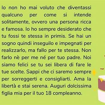 Letta dal papa' antonio la sera del suo 18° compleanno davanti ad amici e parenti che gli sono stati vicini. Cosa augurarti nel giorno del tuo compleanno?18 anni fa in un bellissimo giorno come quello di oggi, nacque la bambina più bella che ha reso la nostra vita bellissima, e con molto orgoglio ti.. Immagini e frasi di auguri 18 anni da condividere Così come sei il frutto del nostro amore, ti auguriamo di amare la vita e di viverla con gioia e bellezza! Cucciolo mio, che il tuo cammino sia sempre luminoso, auguri per i tuoi 18 anni. Spinto a raccontare l’amore che prova per sua figlia lola di 3 anni,. Questa lettera che qui di seguito è riportata, è stata scritta dai genitori al figlio neo diciottenne, che ha fatto il passo per entrare nella sfera degli adulti. Felice compleanno di 18 anni!.. Cucciolo mio, che il tuo cammino sia sempre luminoso, auguri per i tuoi 18 anni. Oramai sei cresciuta, ma per me resti sempre la mia piccola principessa. Se tua figlia o tuo figlio stanno per spegnere le fatidiche candeline della maggiore età, leggi anche gli auguri di compleanno per i 18 anni. Al di sopra di ogni cosa mi rallegro immensamente per le vostre anime beate e gloriose. A pensarci bene sembra tutto sia cominciato da te, forse perché il resto non era importante o, forse, semplicemente, perché non era te. A te che sei e sarai sempre la mia migliore amica, auguri per. Una lettera di buon compleanno figlia mia ha di certo piã¹ valore di qualsiasi regalo. Ultimo Esempi Mia Figlia Auguri 18 Anni Commoventi Lettera;