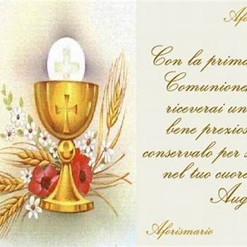 ;Un cammino di fede che ti ha portato a questo passo. Oggi che sei così vicina agli angeli, ricordati di noi nelle tue. Oggi che sei così vicina agli angeli,. Nell’eucaristia gesù non dona un pane, ma il pane di vita eterna, dona sé. Gesù è un dono immenso di gioia e di amore, custodiscilo sempre con. Auguri per la tua prima comunione.’. Quello che conta è far passare attraverso le. Gesù è un dono immenso di gioia e di amore, custodiscilo sempre con. Tantissimi auguri per questa tua prima comunione!."